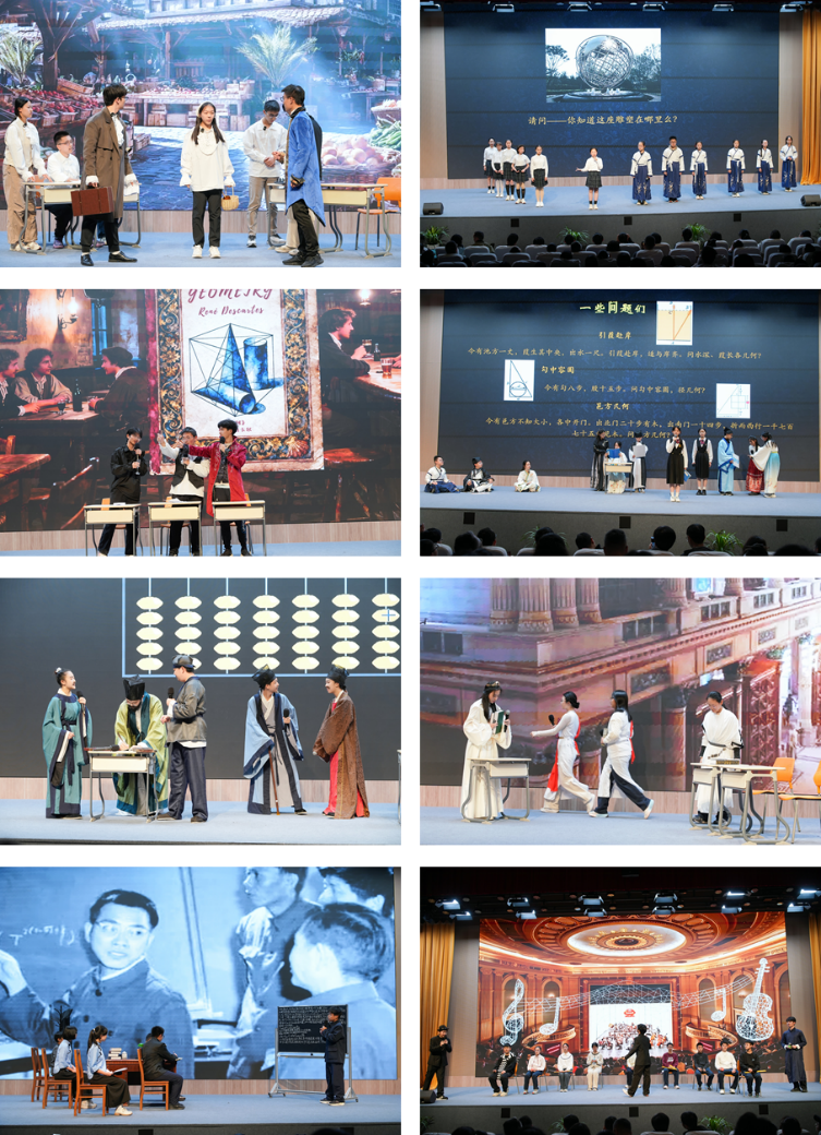 舞台的灯光亮起,八个节目依次登场:上海市闵行中学东校演出《欧拉与七桥的故事》;上海市崇明区裕安中学演出《圆周率的迷宫世界》;苏州大学演出《循“轨”蹈矩》;桐乡市第三中学演出《开普勒先生如是说》(选场);上海中学国际部演出《徐光启与利玛窦之初遇》;上海市市东实验学校演出《希帕蒂娅:真理的火焰》;上海师范大学附属浦东临港中学演出《素数的故事》;华东师范大学演出《有限元之歌》。同学们用精湛的表演将抽象数学定理背后的人物与故事娓娓道来,数学思想与生动的戏剧形式完美结合,赢得了阵阵掌声。