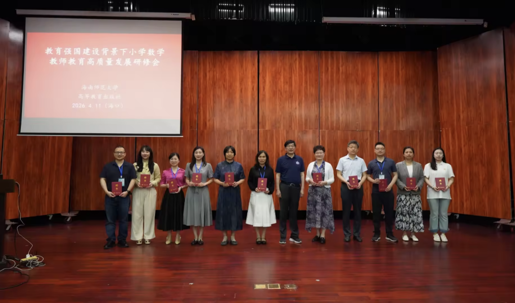 2026年4月10日—12日,教育强国建设背景下小学数学教师教育高质量发展研修会在海南师范大学顺利召开,本次会议由中国数学会数学教育分会、高等教育出版社有限公司联合主办,海南师范大学初等教育学院、中国数学会数学教育分会第二届小学数学教育专业组承办,高等教育出版社海南省教学服务中心支持,来自全国各地的140多位专家学者参与研讨。