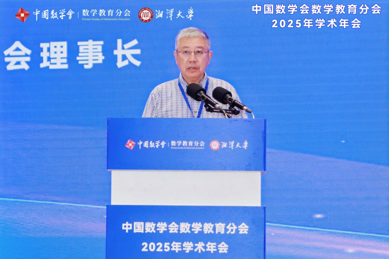 田刚向与会专家、代表介绍了数学教育分会成立以来所取得的工作成效。他表示,数学是自然科学与技术创新的基石,是推动社会进步和科技革命的核心驱动力,而数学教育作为基础教育的关键组成部分,不仅培养学生的逻辑思维、创新意识和解决问题的能力,更肩负着为国家培育未来人才、夯实科技根基的重大使命。他还特别提到,湘潭大学是毛主席亲自倡办、亲笔题写校名并亲切嘱托一定要办好的大学,数学学科底蕴深厚、特色鲜明,在此举办年会意义非凡。